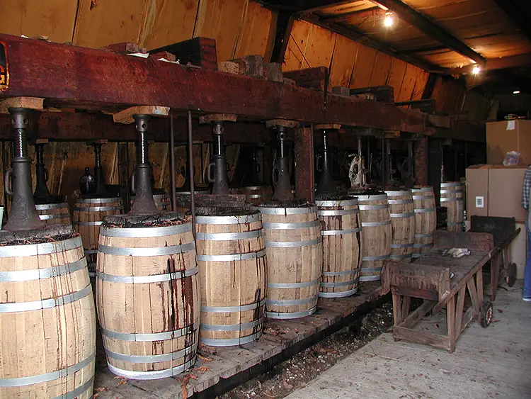 - Messa sotto pressione: le foglie vengono private della costola centrale, arrotolate in “torquettes” (specie di grossi sigari) e infilate in barili di rovere (spesso ex-bourbon).